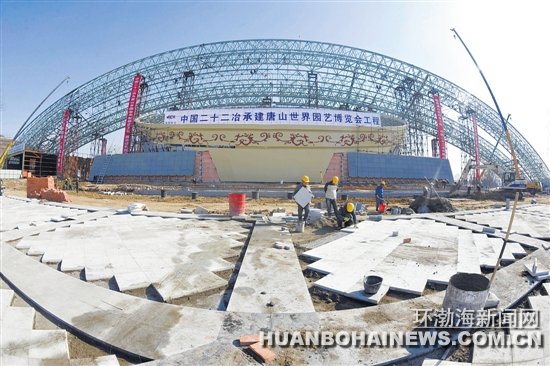 環(huán)渤海新聞網(wǎng)消息 2月25日,施工人員鋪裝世園會(huì)D5大門門前廣場。 世園會(huì)D5大門位于園區(qū)西部,主體結(jié)構(gòu)為大跨空間鋼結(jié)構(gòu)樹枝型骨架式膜結(jié)構(gòu)體系。目前,來自中國二十二冶的施工人員晝夜奮戰(zhàn),確保3月試 ...