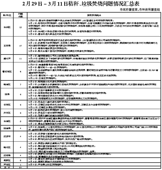 唐山市人民政府辦公廳關(guān)于對(duì)秸稈、垃圾焚燒污染大氣環(huán)境問(wèn)題的通報(bào) 針對(duì)我市近期多數(shù)縣(市)區(qū)焚燒秸稈、垃圾、荒草等現(xiàn)象頻發(fā)問(wèn)題,按照市政府領(lǐng)導(dǎo)要求,市政府督查室、市環(huán)保局組成了六個(gè)聯(lián)合督查組對(duì)焚燒 ...