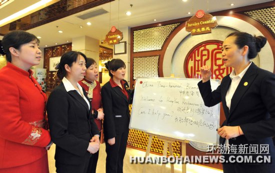 環(huán)渤海新聞網(wǎng)消息 為迎接2016唐山世界園藝博覽會(huì)的到來,中華老字號鴻宴飯莊在提高餐飲、服務(wù)質(zhì)量的同時(shí),組織員工利用業(yè)余時(shí)間進(jìn)行英語和啞語服務(wù)用語培訓(xùn),準(zhǔn)備以良好的形象和優(yōu)質(zhì)的服務(wù)迎接五洲賓朋的 ...