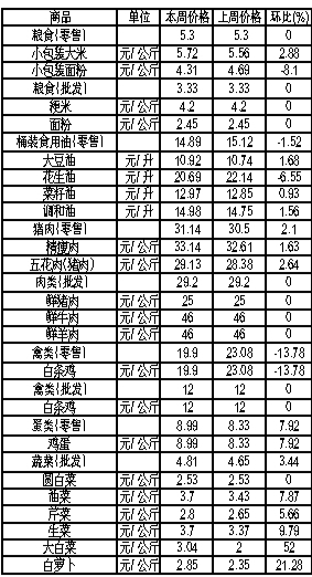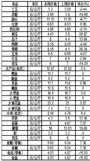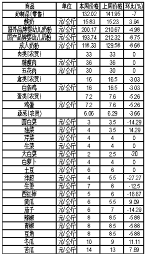 唐山市生活必需品周價(jià)格情況表 (4月23日至4月29日 市商務(wù)局運(yùn)調(diào)處提供)