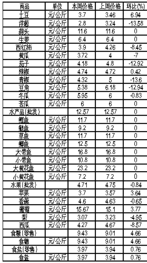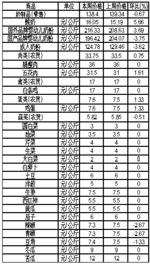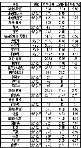 唐山市生活必需品周價(jià)格情況表 (4月30日至5月6日 市商務(wù)局運(yùn)調(diào)處提供)