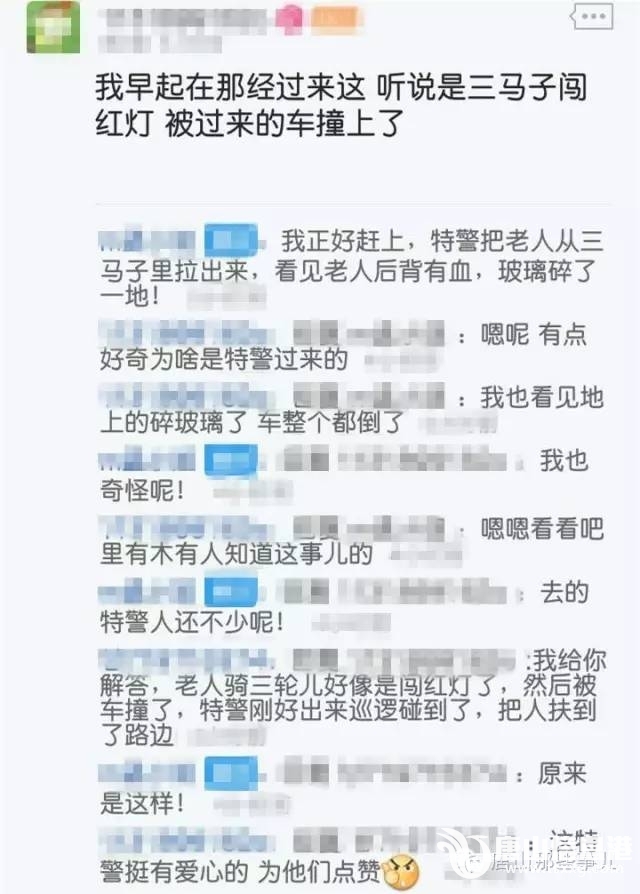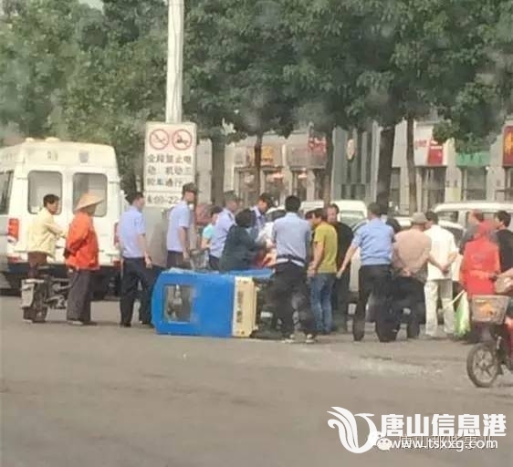 網(wǎng)友爆料,今天早上在古冶王家巷附近發(fā)生一起車禍,一名老人在騎電動(dòng)三輪車過馬路時(shí)被連人帶車撞倒,地上散落一堆碎玻璃,老人后背上有血,正好經(jīng)過一輛特警的車輛,將老人攙到了路邊。