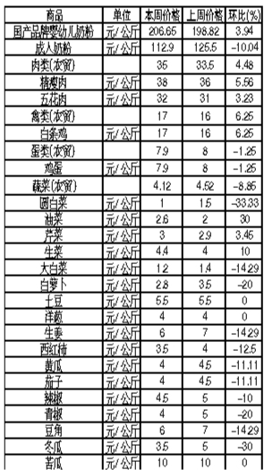 唐山市生活必需品周價(jià)格情況表 (6月4日至6月10日 市商務(wù)局運(yùn)調(diào)處提供)