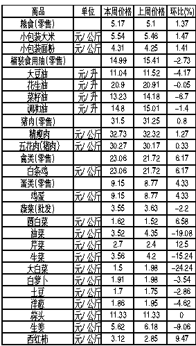 唐山市生活必需品周價(jià)格情況表 (8月27日至9月2日 市商務(wù)局運(yùn)調(diào)處提供)