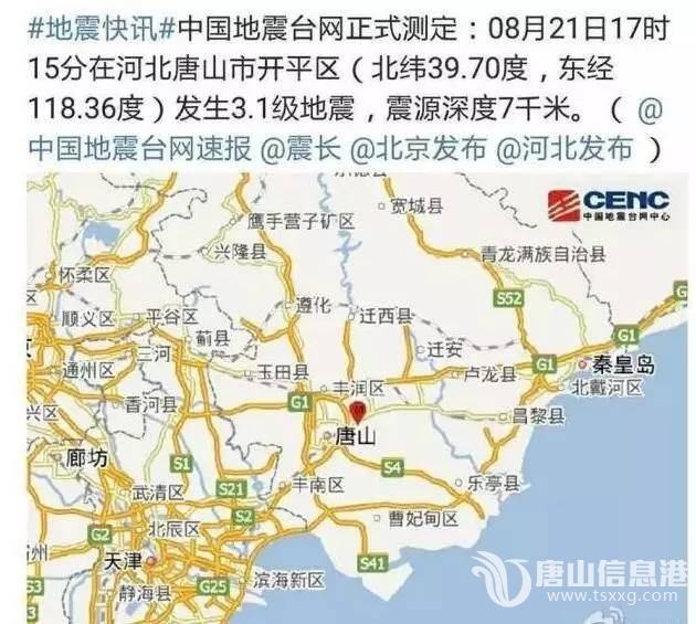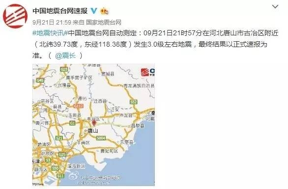 導讀中國地震臺網消息:昨晚21:57:54,唐山發(fā)生2.6級地震,你有震感嗎?昨天21點57分,古冶區(qū)發(fā)生2.6級地震