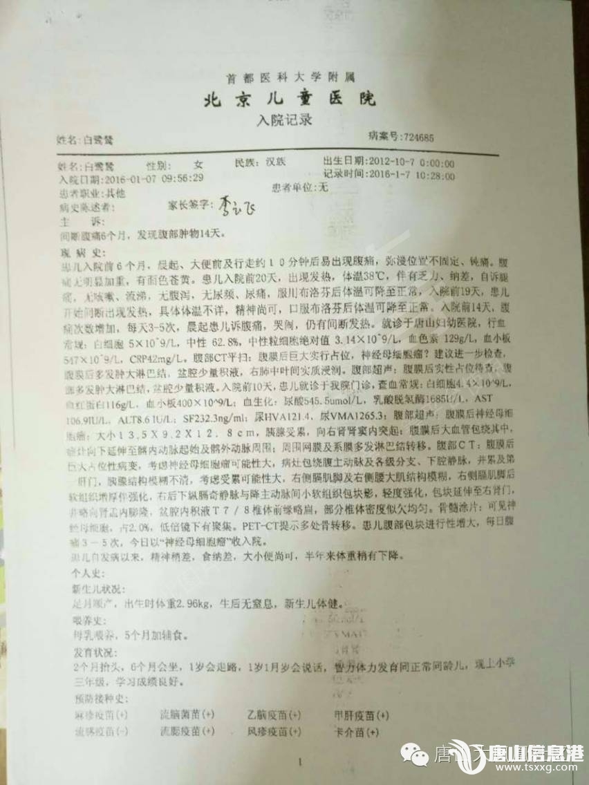 來源:愛心籌、唐山網(wǎng)友助堅強鷥鷥戰(zhàn)勝神母細胞瘤 白鷺鷥,2012年10月7日我們的女兒出生了,她是我們的掌中寶。 我們幸福地生活在2015年12月24被打破,當時鷺鷥才3歲2個多月,由于斷續(xù)的發(fā)燒,加之腿疼,腹部疼痛 ...