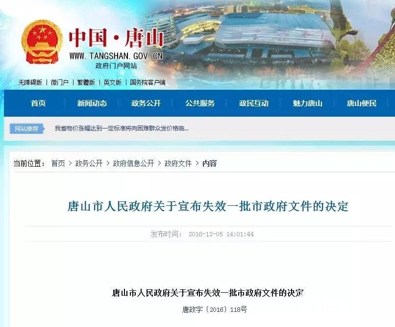 唐山市人民政府關(guān)于宣布失效一批市政府文件的決定。凡宣布失效的政府文件,一律停止執(zhí)行,不再作為行政管理的依據(jù)。 宣布失效的政府文件目錄(共13件) 1. 唐山市人民政府關(guān)于印發(fā)唐山市深化城鎮(zhèn)住房制度改革實施 ...
