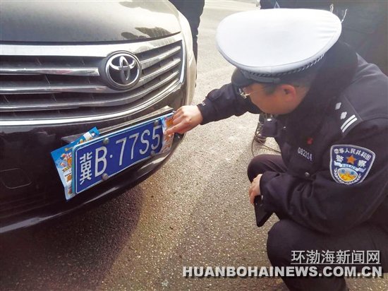 交警部門嚴(yán)查機(jī)動車涉牌違法 這些駕駛?cè)塑嚺粕稀跋鹿Ψ颉北徊楂@ 圖為民警查獲遮擋號牌車輛。 記者 魏偉 攝 環(huán)渤海新聞網(wǎng)消息 (記者 魏偉)近期,我市正在施行機(jī)動車單雙號限行措施。昨天上午,交警部門開展 ...