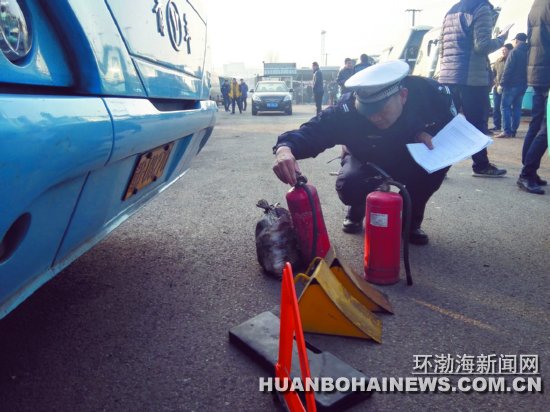 環(huán)渤海新聞網(wǎng)消息 春運(yùn)即將來臨,市公安交警支隊(duì)八大隊(duì)對轄區(qū)公路客車、旅游包車、危險(xiǎn)品運(yùn)輸車等重點(diǎn)車輛進(jìn)行全面外觀體檢,并召集客運(yùn)企業(yè)負(fù)責(zé)人、駕駛?cè)苏匍_安全例會,進(jìn)行安全警示教育。圖為民警在對 ...