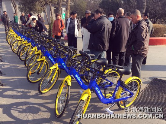 新共享單車引市民圍觀 記者 鄭雪靚 攝 環(huán)渤海新聞網(wǎng)消息 (記者 鄭雪靚)3月15日早上,不少市民發(fā)現(xiàn)一批黃藍(lán)相間的新共享單車出現(xiàn)在唐山街頭,這批共享單車上標(biāo)有“永安行”字樣,沒(méi)有固定的車樁,隨騎隨停 ...