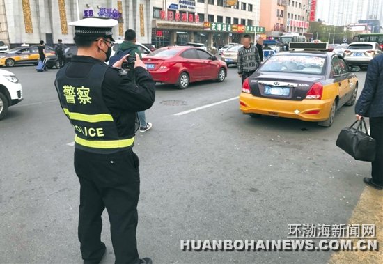 《記者暗訪唐山火車站外出租車亂象》后續(xù)報道 交警部門曝光一批違停出租車 圖為執(zhí)勤民警對違停出租車拍照取證。 環(huán)渤海新聞網消息(本報記者)近日,本報對火車站外出租車亂象及相關部門開展治理工作進行了 ...