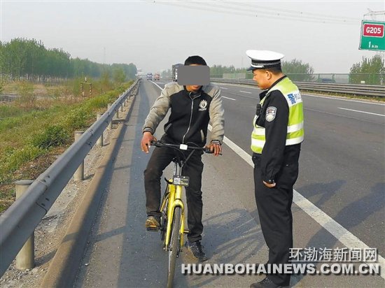 這個(gè)小伙蹬著共享單車上了高速路 高速交警批評(píng)教育后將其勸離 環(huán)渤海新聞網(wǎng)消息 (記者 魏偉 實(shí)習(xí)生 吳雨瀟)4月24日,一男子蹬著共享單車上了高速公路,從天津前往廊坊,被高速交警豐南大隊(duì)巡邏民警發(fā)現(xiàn), ...