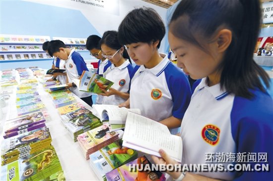 6月1日,幾名學(xué)生在書博會(huì)唐山會(huì)場(chǎng)翻閱圖書。 環(huán)渤海新聞網(wǎng)消息 當(dāng)日,第27屆全國圖書交易博覽會(huì)唐山會(huì)場(chǎng)暨第9屆河北省書博會(huì)在唐山開幕。書博會(huì)唐山會(huì)場(chǎng)展館面積1萬平方米,設(shè)有少兒圖書展、精品圖書展、 ...