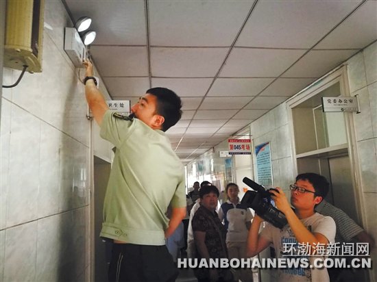 唐山公安消防支隊(duì) 開展高考考點(diǎn)消防安全檢查 圖為消防部門檢查人員正在檢查應(yīng)急照明燈。肖方 攝 環(huán)渤海新聞網(wǎng)消息 6月5日,唐山公安消防支隊(duì)組織各轄區(qū)大隊(duì)對全市高考考點(diǎn)進(jìn)行普查,幫助考點(diǎn)排查消防安全 ...