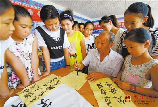 8月8日,唐山市豐潤(rùn)區(qū)左家塢鎮(zhèn)"留守兒童之家"的"代理家長(zhǎng)"張藝鵬(前右二)指導(dǎo)孩子們學(xué)習(xí)書(shū)法。 暑假期間,河北省唐山市豐潤(rùn)區(qū)左家塢鎮(zhèn)政府針對(duì)轄區(qū)留守兒童多的情況,在鎮(zhèn)文化站成立"留守兒童之家 ...