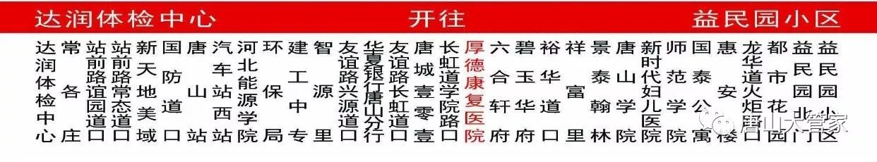 21路線路調(diào)整,11路線路調(diào)整,“煤醫(yī)冀唐學(xué)院”更名為“唐山職院新校區(qū)”,涉及到經(jīng)過(guò)的線路有91路、92路、豐南商務(wù)專線 21路:達(dá)潤(rùn)體檢中心-益民園小區(qū)。首班5:40末班20:00。達(dá)潤(rùn)體檢中心、常各莊、站前路誼園 ...