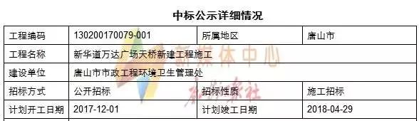 河北建設(shè)工程信息網(wǎng)日前發(fā)布公告,新華道萬達(dá)廣場段將建設(shè)天橋,計(jì)劃開工日期為2017年12月1日。此前已對翔云道唐山一中天橋、北新道路北實(shí)驗(yàn)小學(xué)天橋新建工程施工進(jìn)行了招標(biāo)。 位于新華東道,十一中門口, ...