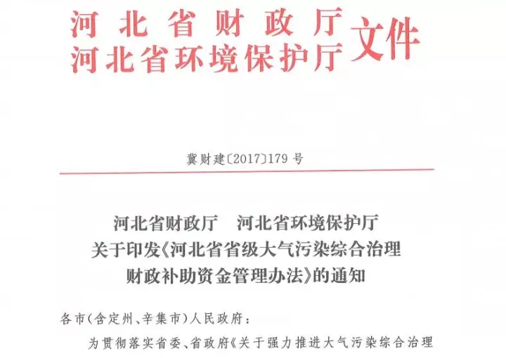 為貫徹落實河北省《關(guān)于強力推進(jìn)大氣污染綜合治理的意見》及18個專項實施方案決策部署,規(guī)范和加強省級大氣污染綜合治理財政補助資金管理,切實改善全省大氣環(huán)境質(zhì)量,經(jīng)省政府同意,河北制定了《河北省省級大氣污染 ...