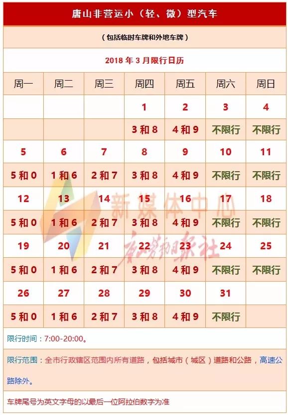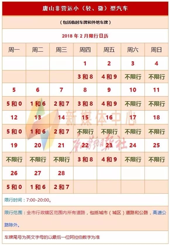2017年還有不到一個月就過去了 幾天前2018年放假通知來了那么,至明年3月31日唐山哪天限行也就確定了 更需注意的是明年1月8日起限行尾號調(diào)整每天限啥號有變化 按照《唐山市人民政府關(guān)于實(shí)行冬春季機(jī)動車限行 ...