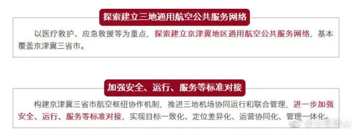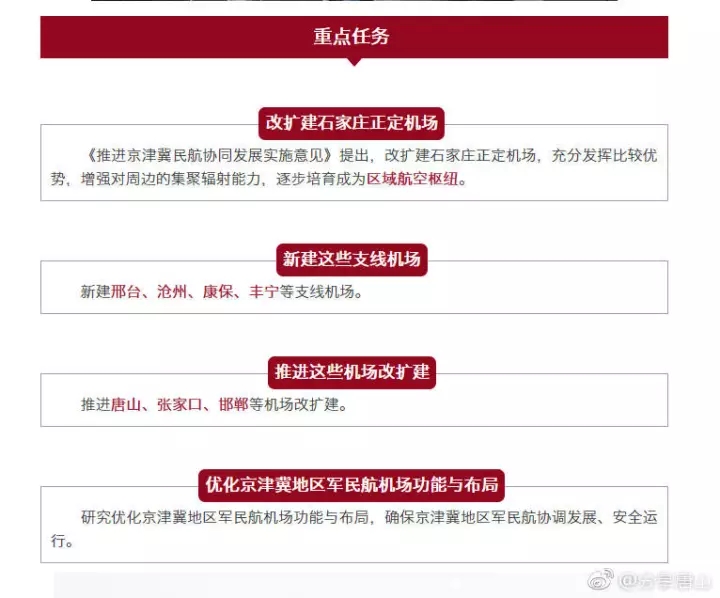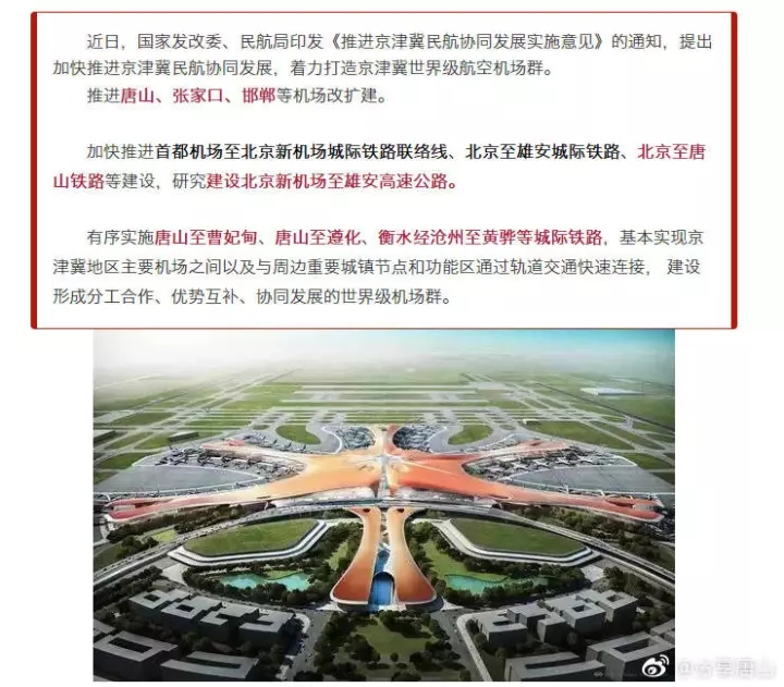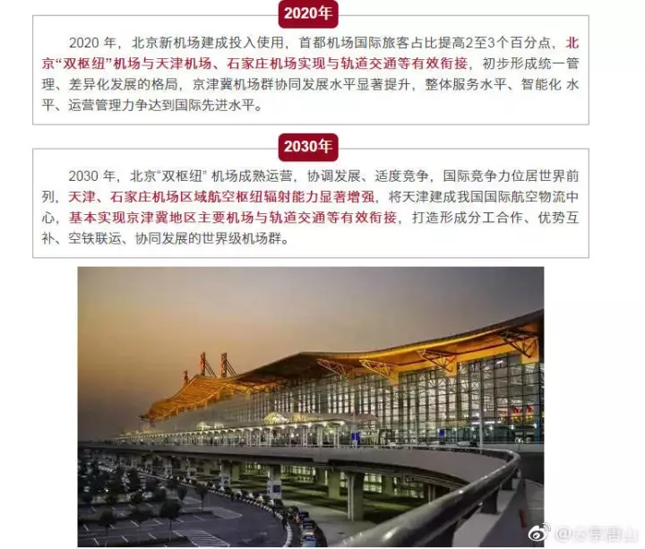 近日,國(guó)家發(fā)改委、民航局印發(fā)《推進(jìn)京津冀民航協(xié)同發(fā)展實(shí)施意見(jiàn)》的通知,提出加快推進(jìn)京津冀民航協(xié)同發(fā)展,著力打造京津冀世界級(jí)航空機(jī)場(chǎng)群。推進(jìn)唐山、張家口、邯鄲等機(jī)場(chǎng)改擴(kuò)建。加快推進(jìn)首都機(jī)場(chǎng)至北京新機(jī)場(chǎng)城 ...