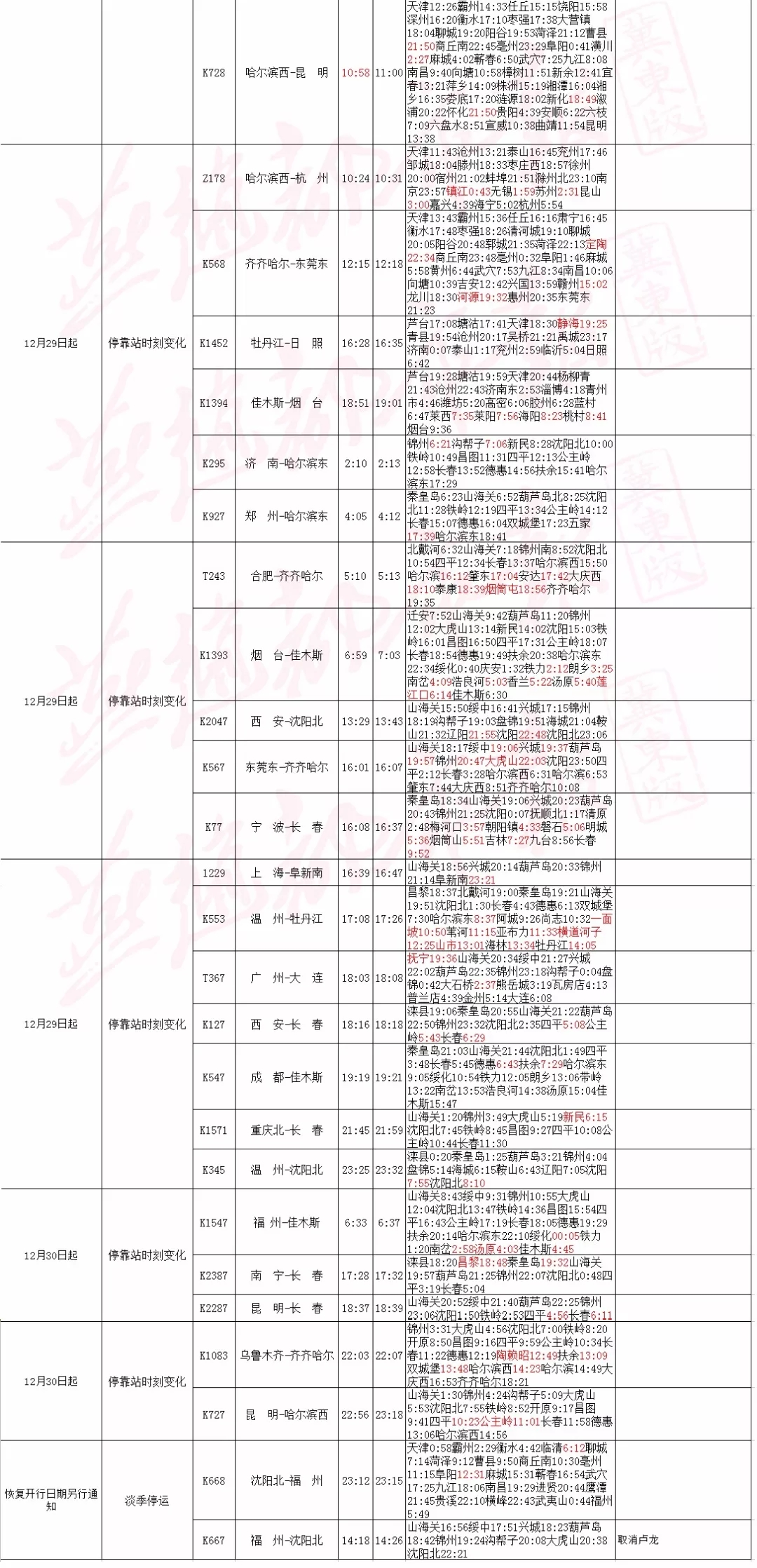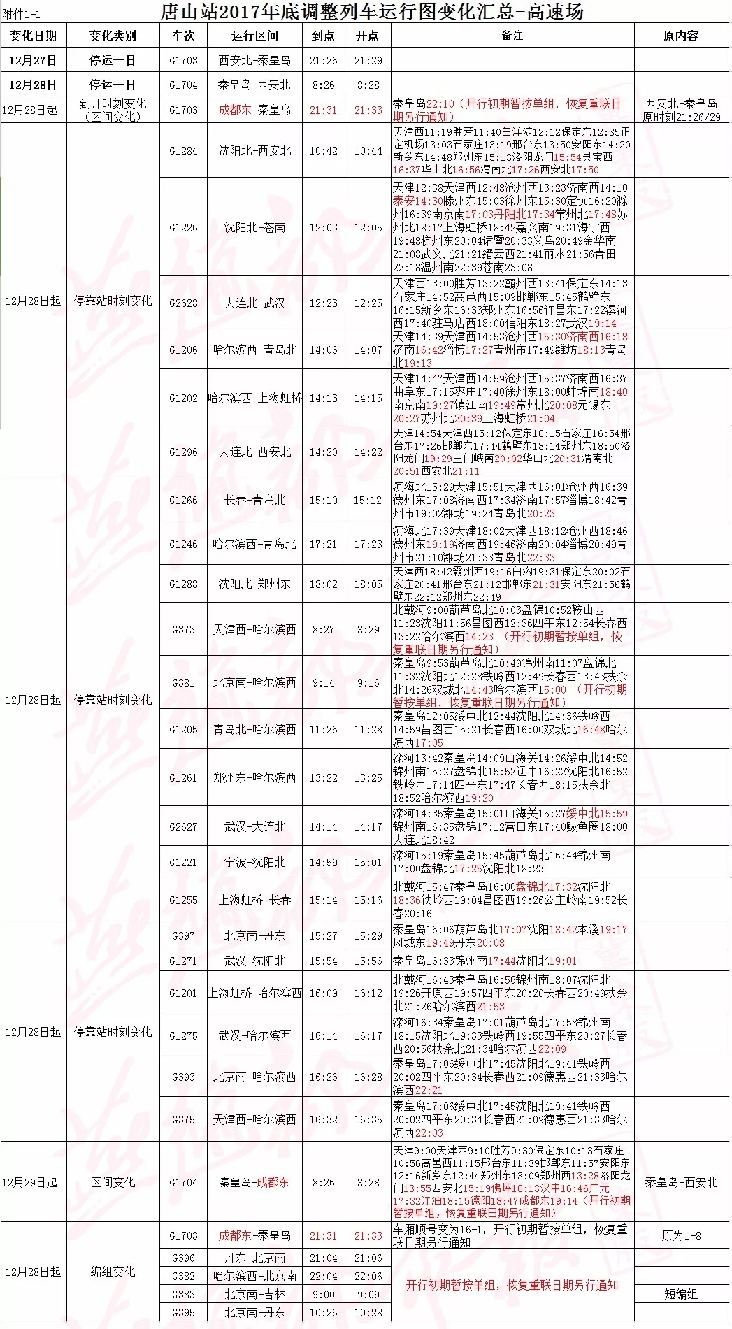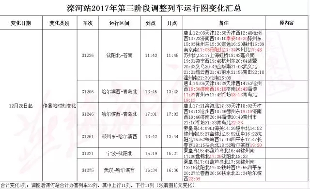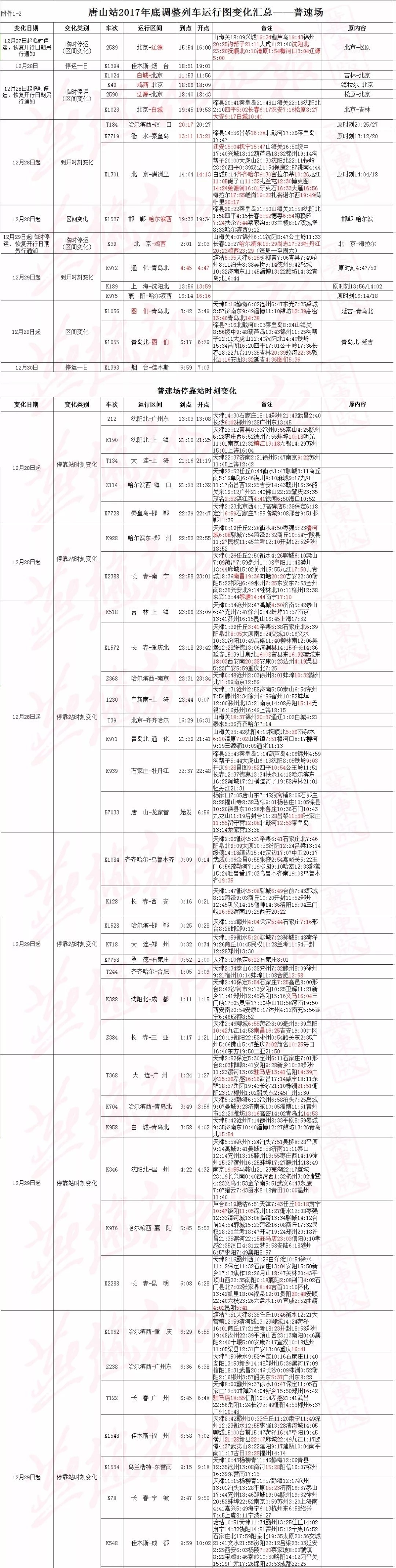據(jù)了解,2017年年底,唐山站實(shí)施新列車調(diào)整圖。據(jù)了解,旅客列車調(diào)整圖自2017年12月28日零時(shí)起實(shí)行,特快和快速貨運(yùn)班列調(diào)整圖自2017年12月28日零時(shí)起實(shí)行。其他貨物列車調(diào)整圖自2017年12月27日18時(shí)起實(shí)行。 唐 ...