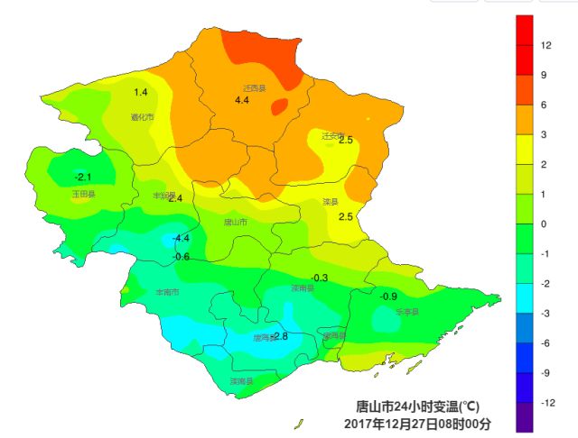 今天(27日)我市8時(shí)氣溫與昨日同時(shí)刻相比,氣溫以回升為主, 預(yù)報(bào)來(lái)源:唐山氣象臺(tái) 2017年12月27日11時(shí) 來(lái)源:唐山天氣(ID:ts-weather)