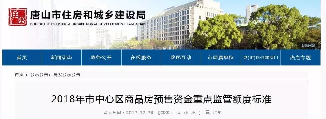 日前,唐山市住房和城鄉(xiāng)建設局網(wǎng)站公布了《2018年市中心區(qū)商品房預售資金重點監(jiān)管額度標準》。 注:1.重點監(jiān)管額度是指預售項目所需的建筑施工、設備安裝、材料購置、小 ...