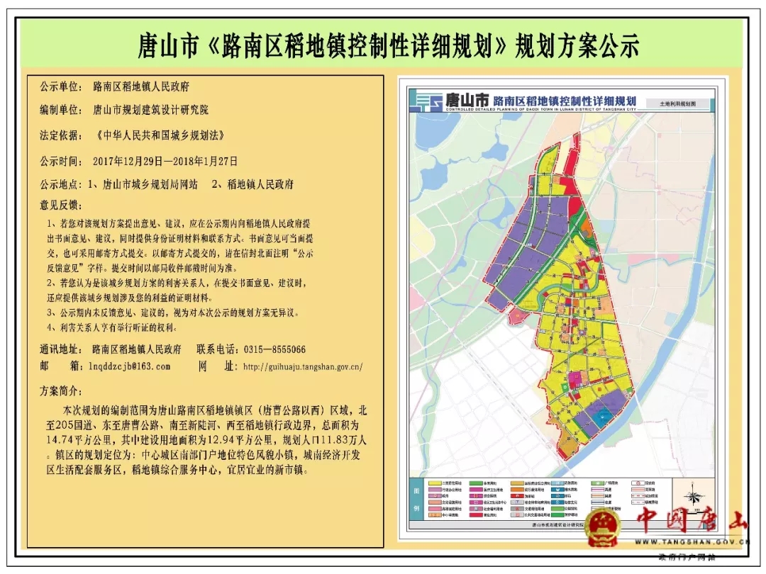 12月29日,唐山市城鄉(xiāng)規(guī)劃局網(wǎng)站發(fā)布了唐山市《路南區(qū)稻地鎮(zhèn)控制性詳細(xì)規(guī)劃》規(guī)劃方案公示 ,此鎮(zhèn)區(qū)定位為:中心城區(qū)南部門戶特色風(fēng)貌小鎮(zhèn);城南經(jīng)濟(jì)開(kāi)發(fā)區(qū)生活配套服務(wù)區(qū);稻地鎮(zhèn)綜合服務(wù)中心;宜居宜業(yè)的新市鎮(zhèn)。 ...