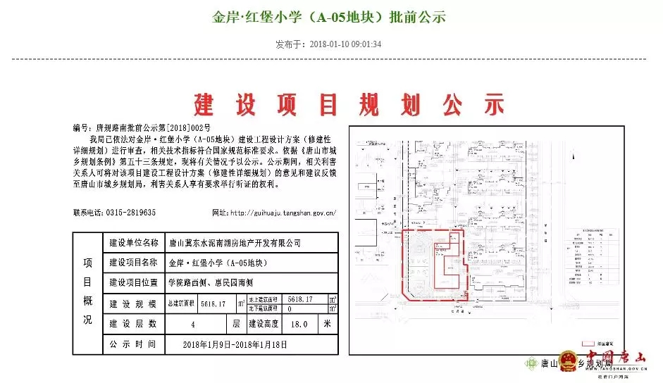 日前,唐山市城鄉(xiāng)規(guī)劃局網(wǎng)站公布了金岸·紅堡小學(xué)(A-05地塊)建設(shè)項(xiàng)目規(guī)劃公示。 據(jù)公示內(nèi)容,建設(shè)項(xiàng)目位置位于學(xué)院路西側(cè)、惠民園南側(cè),建筑面積5618.17㎡。 來源 唐山市城鄉(xiāng)規(guī)劃局網(wǎng)站
