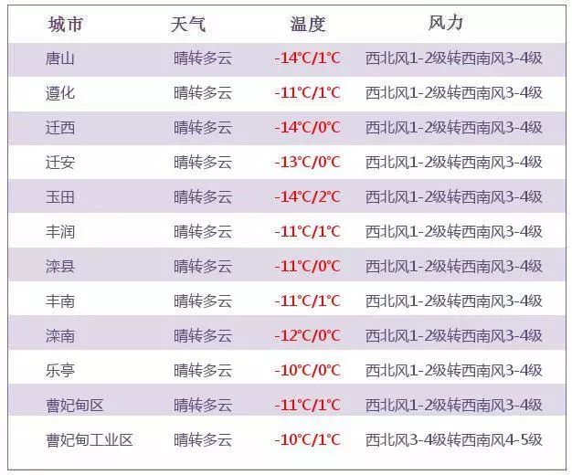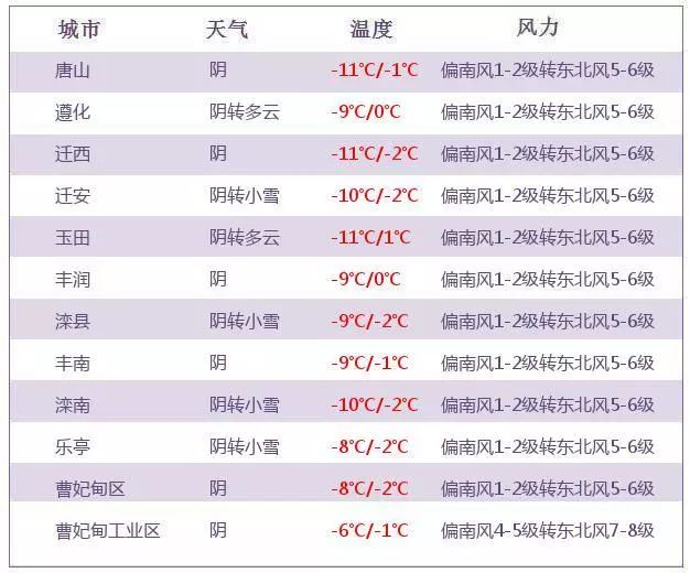 今早唐山大部分地區(qū)出現(xiàn)了不同程度的降溫,早晨8點,唐山降溫幅度達到了6.7℃,弱冷空氣帶給大家的除了降溫,伴隨弱冷空氣而來的,還有大風!遷安、灤縣、灤南、樂亭陰轉小雪 來源:唐山天氣