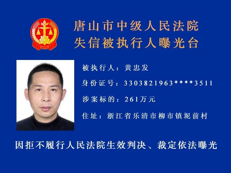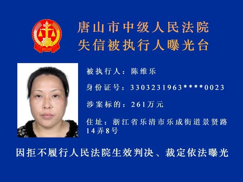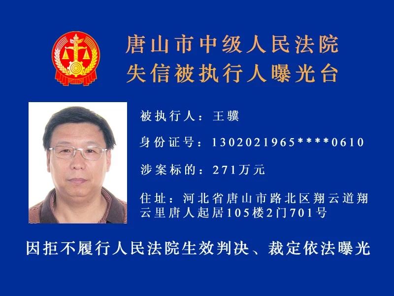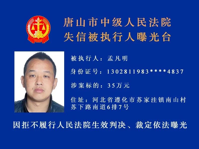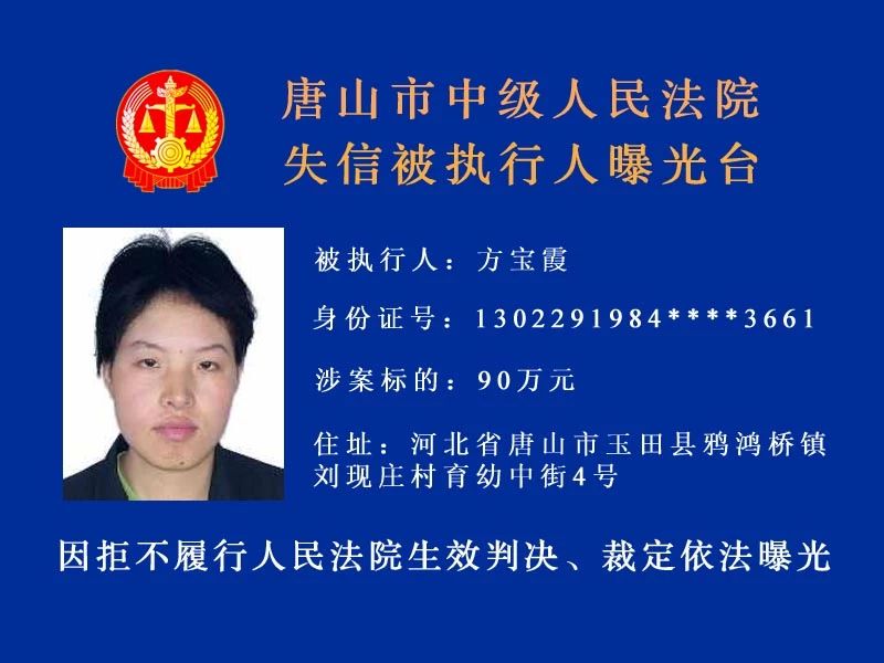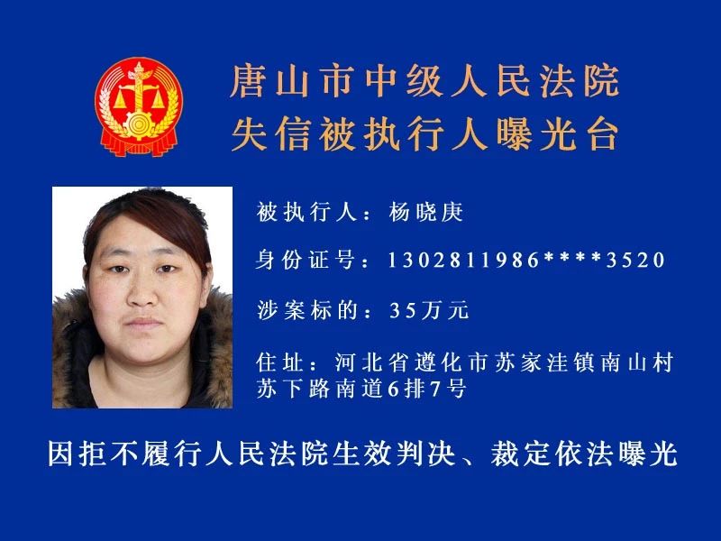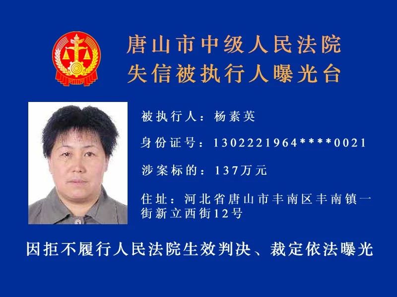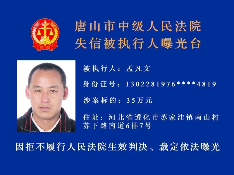 唐山中院曝光了新一批“老賴”名單快來看看里面有沒有你認(rèn)識的人!歡迎社會各界和廣大人民群眾積極舉報被執(zhí)行人下落及可供執(zhí)行財產(chǎn)線索。舉報人提供的財產(chǎn)線索經(jīng)查證屬實并實際執(zhí)行到位 ...