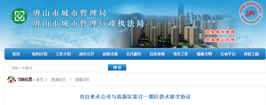 唐山市城管局網(wǎng)站消息,為更直接、便利地服務(wù)用戶,公司與高新區(qū)相關(guān)部門一直在積極推進(jìn)供水移交工作。近日,在市城管局領(lǐng)導(dǎo)大力支持下,雙方成功簽訂《唐山高新區(qū)一期區(qū)供水移交協(xié)議》。高新區(qū)一期區(qū)內(nèi)的市政公共供 ...