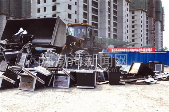 路北警方集中銷毀400余臺(tái)賭博機(jī) 環(huán)渤海新聞網(wǎng)消息 近日,唐山市公安局路北分局組織對(duì)今年以來收繳的400余臺(tái)賭博機(jī)進(jìn)行集中銷毀(如圖)。 打擊黃賭專項(xiàng)行動(dòng)以來,該局高度重視、強(qiáng)勢(shì)推進(jìn),截至目前,共辦 ...
