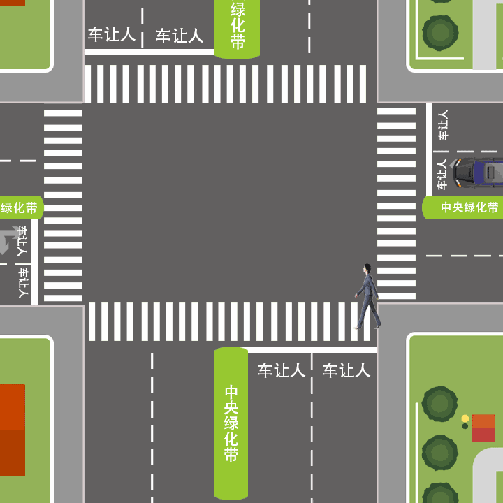 行人步入斑馬線,車輛行經(jīng)交叉路口轉(zhuǎn)彎時,左轉(zhuǎn)車輛必須讓行。