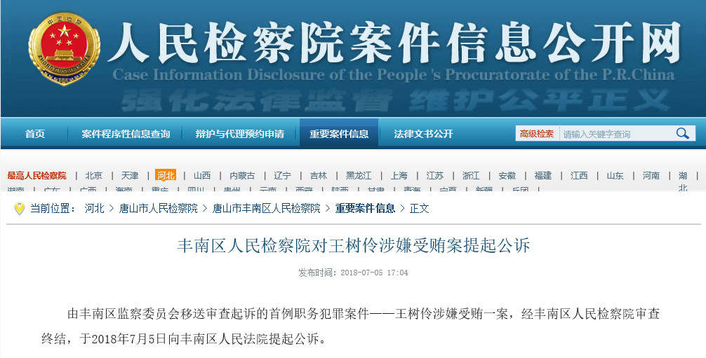 豐南區(qū)人民檢察院對王樹伶涉嫌受賄案提起公訴由豐南區(qū)監(jiān)察委員會移送審查起訴的首例職務犯罪案件——王樹伶涉嫌受賄一案,經豐南區(qū)人民檢察院審查終結,于2018年7月5日向豐南區(qū)人民法院提起公訴。