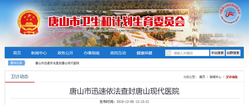 唐山市迅速依法查封唐山現(xiàn)代醫(yī)院。 唐山發(fā)布(tangshanpress)綜合整理出品