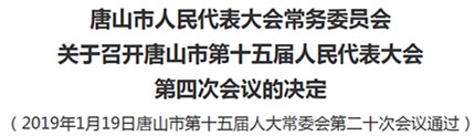 唐山市第十五屆人民代表大會常務(wù)委員會第二十次會議決定:唐山市第十五屆人民代表大會第四次會議于2019年1月24日召開。建議會議議程為: 一、聽取和審議唐山市人民政府工作報告 二、審查和批準(zhǔn)唐山市201 ...