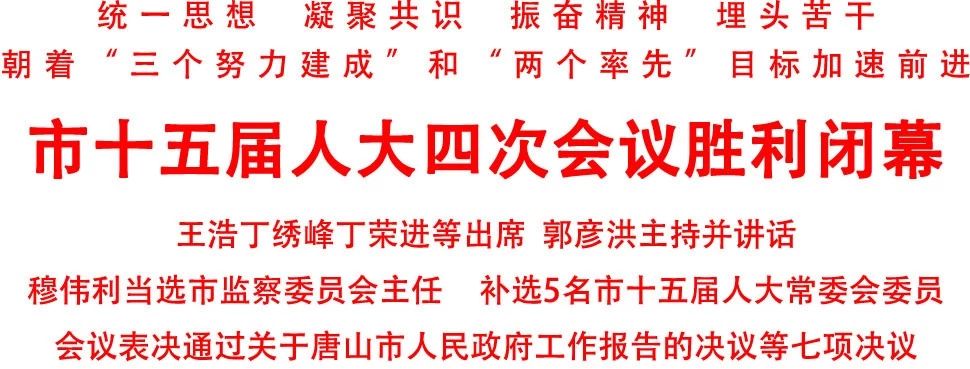 1月27日上午,唐山市第十五屆人民代表大會第四次會議舉行第四次全體會議,圓滿完成各項(xiàng)議程后,市十五屆人大四次會議在唐山大劇院勝利閉幕。 會議應(yīng)到代表532名,實(shí)到501名,符合法定人數(shù)。 大會主席團(tuán)常 ...