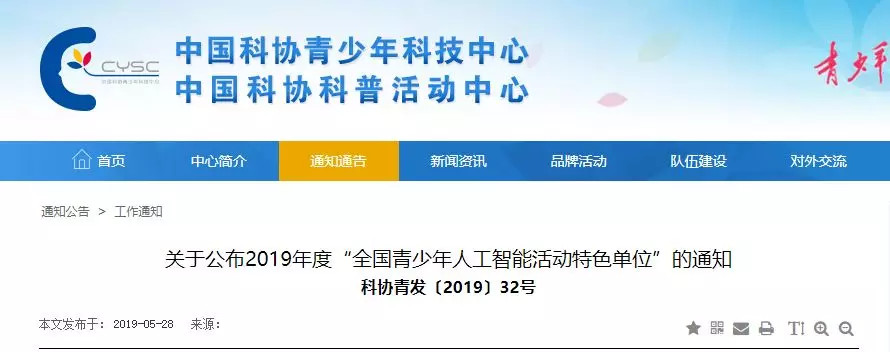 近日, 中國(guó)科協(xié)青少年科技中心發(fā)布通知,公布2019年度“全國(guó)青少年人工智能活動(dòng)特色單位”。經(jīng)省級(jí)審核、資格審查和專家評(píng)選,共900個(gè)單位被評(píng)選為活動(dòng)特色單位。其中,河北58家單位入選,包括唐山5所小學(xué) 4 ...