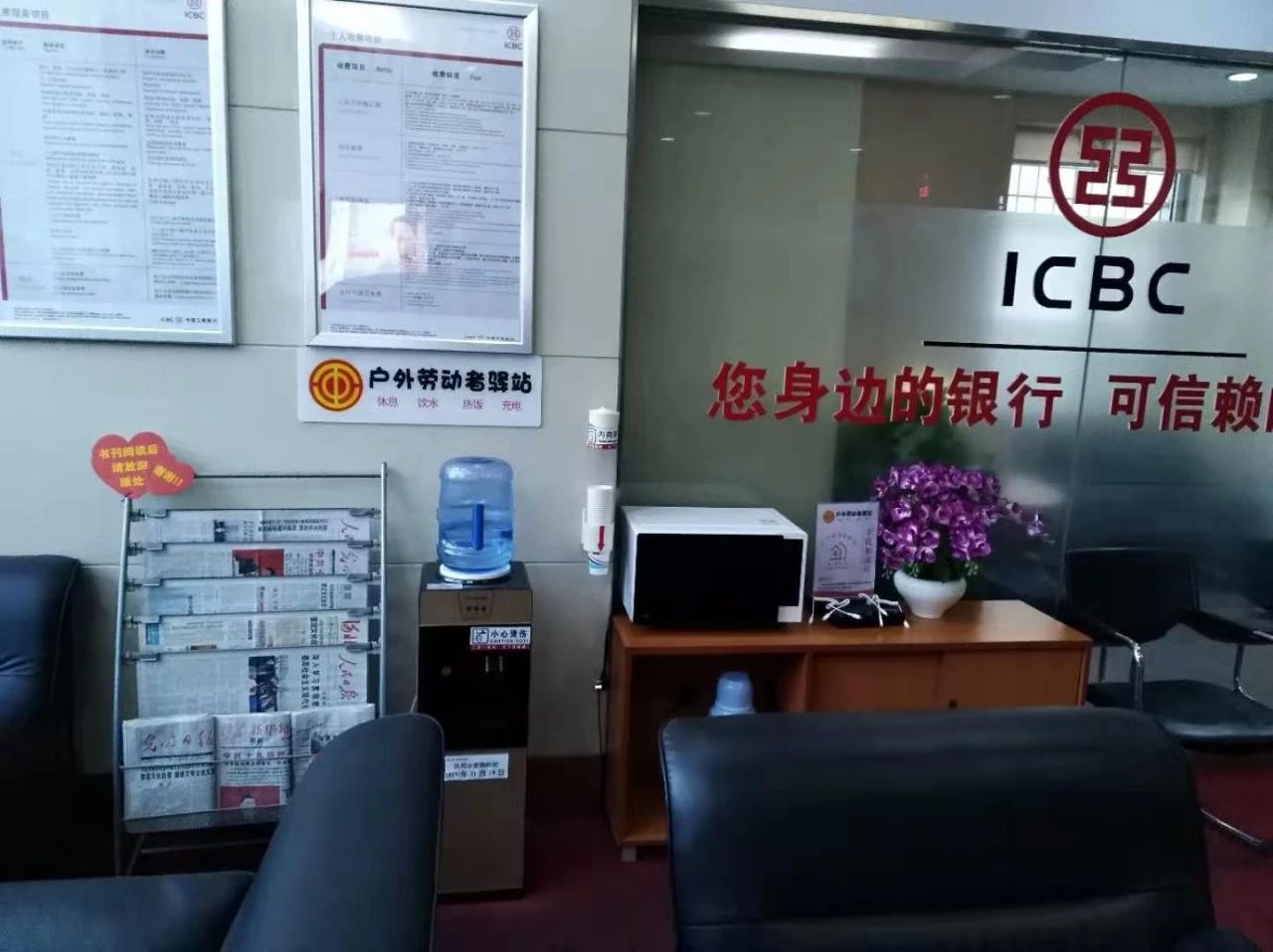 這兩天我市天氣驟降并且雨雪有霧,在這種惡劣天氣下,依然有許多環(huán)衛(wèi)工堅(jiān)守在戶(hù)外的工作崗位上。在高新區(qū)附近工作的周大姐看到農(nóng)行高新開(kāi)區(qū)支行門(mén)外顯眼位置擺放著一塊“戶(hù)外勞動(dòng)者驛站”的牌子,便進(jìn)來(lái)休息, ...