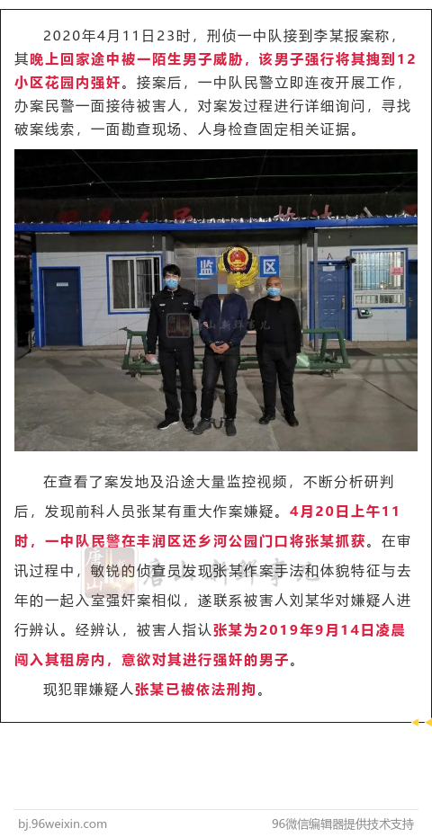 近日刑偵大隊(duì)一中隊(duì)經(jīng)過縝密偵查破獲強(qiáng)奸案2起▼ 來源:唐山刑偵中隊(duì)