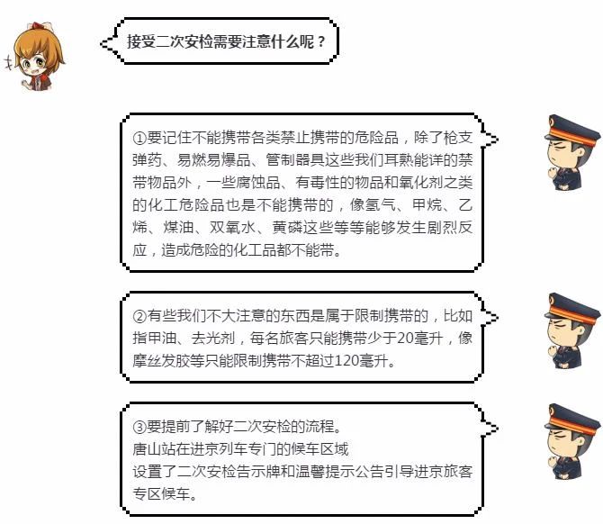 為做好全國“兩會”期間安保工作 自5月15日至5月31日唐山站實行進京方向列車二次安檢實名身份二次全面查驗工作請進京旅客提前2小時到站候車主動接受安檢以免耽誤行程 二次安檢的目的是保障每一名旅客的生命 ...