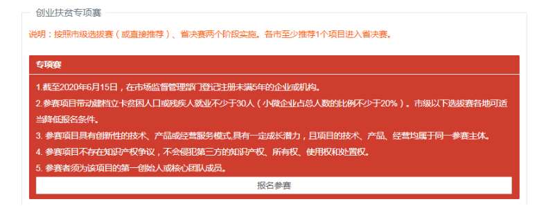 第四屆中國(guó)創(chuàng)翼創(chuàng)業(yè)創(chuàng)新大賽河北選拔賽唐山賽區(qū)暨2020唐山創(chuàng)業(yè)創(chuàng)新大賽報(bào)名工作正在進(jìn)行,截止日期為6月15日。大賽包括主體賽和創(chuàng)業(yè)扶貧專項(xiàng)賽兩部分,主體賽分為創(chuàng)新項(xiàng)目組和創(chuàng)業(yè)項(xiàng)目組 ...