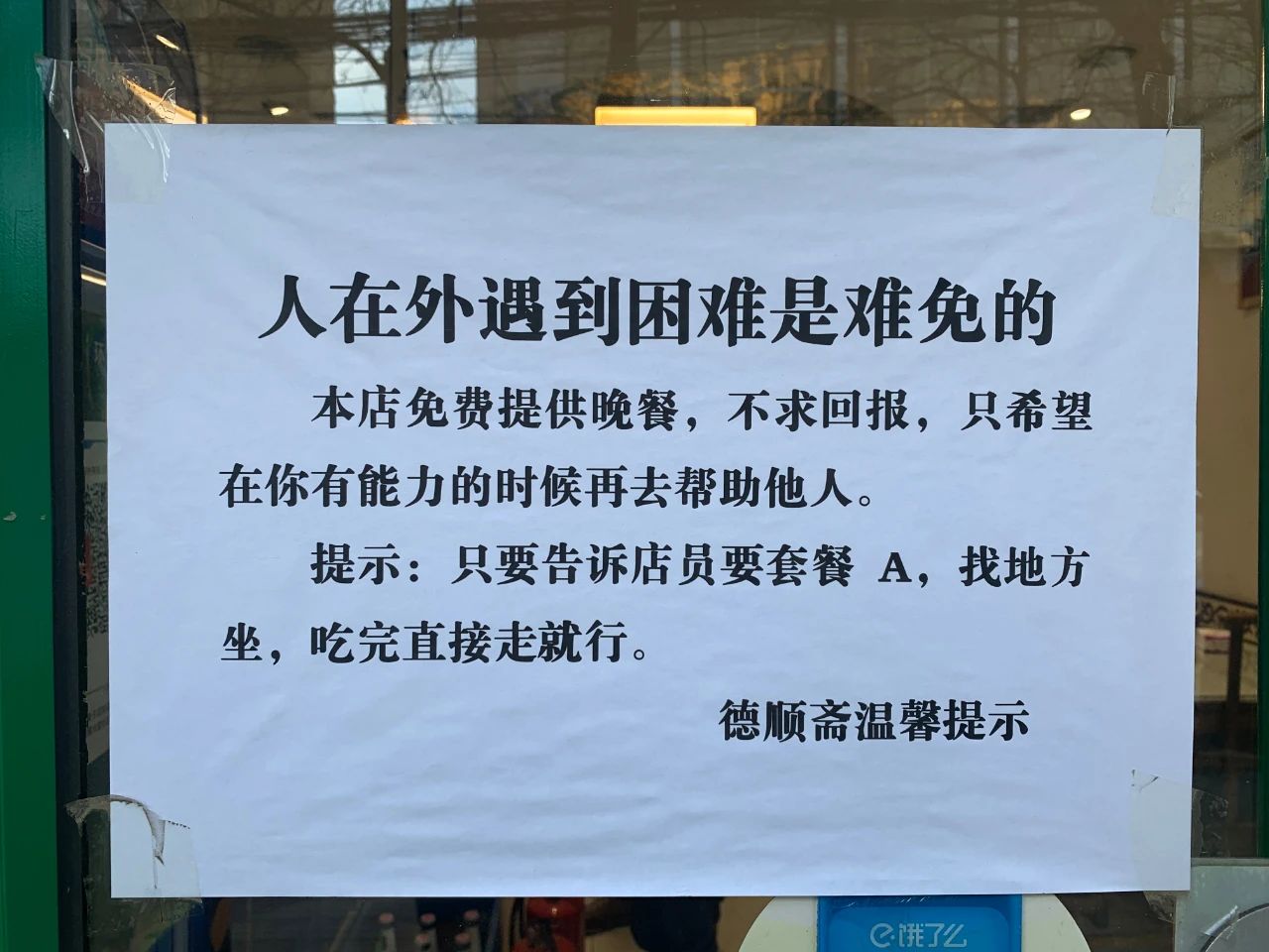 近日,北京一家飯店的“套餐A”火遍全網(wǎng),溫暖了無(wú)數(shù)人 第一次來(lái)吃飯的宋女士說(shuō)“我覺(jué)得在寒冷的冬天里要是真有困難的人看到這樣的善舉心里會(huì)覺(jué)得很暖 ...