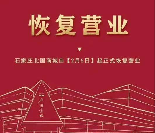 2月4日晚9時許,省會石家莊各商業(yè)綜合體、百貨商場均陸續(xù)發(fā)出恢復(fù)營業(yè)公告。 北國商城、先天下、新百廣場、勒泰中心、東勝廣場、石家莊裕華萬達(dá)廣場、萬象 ...