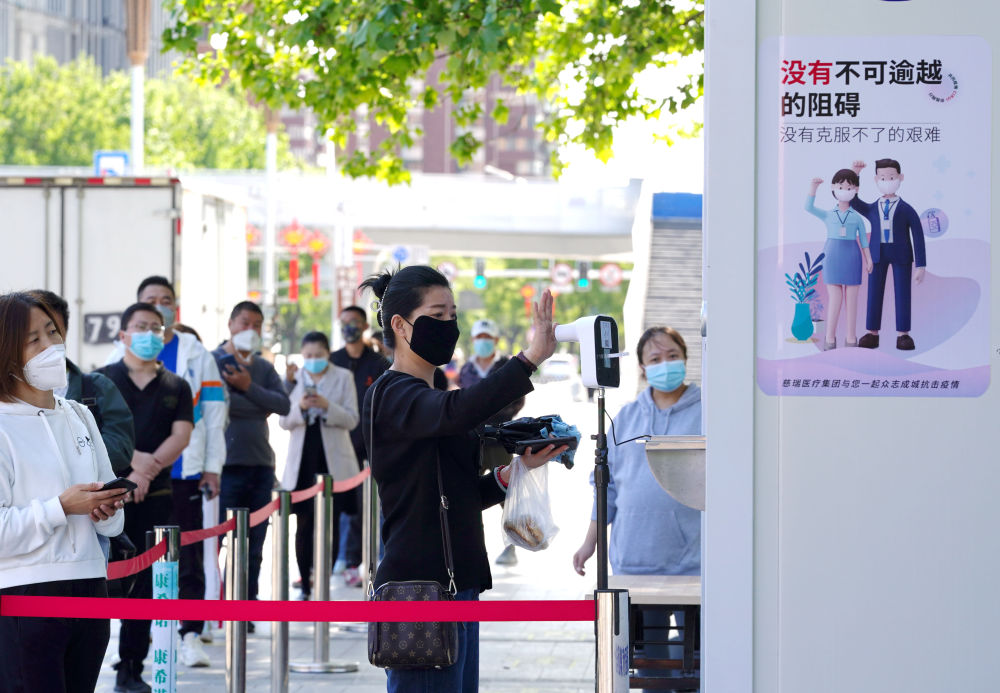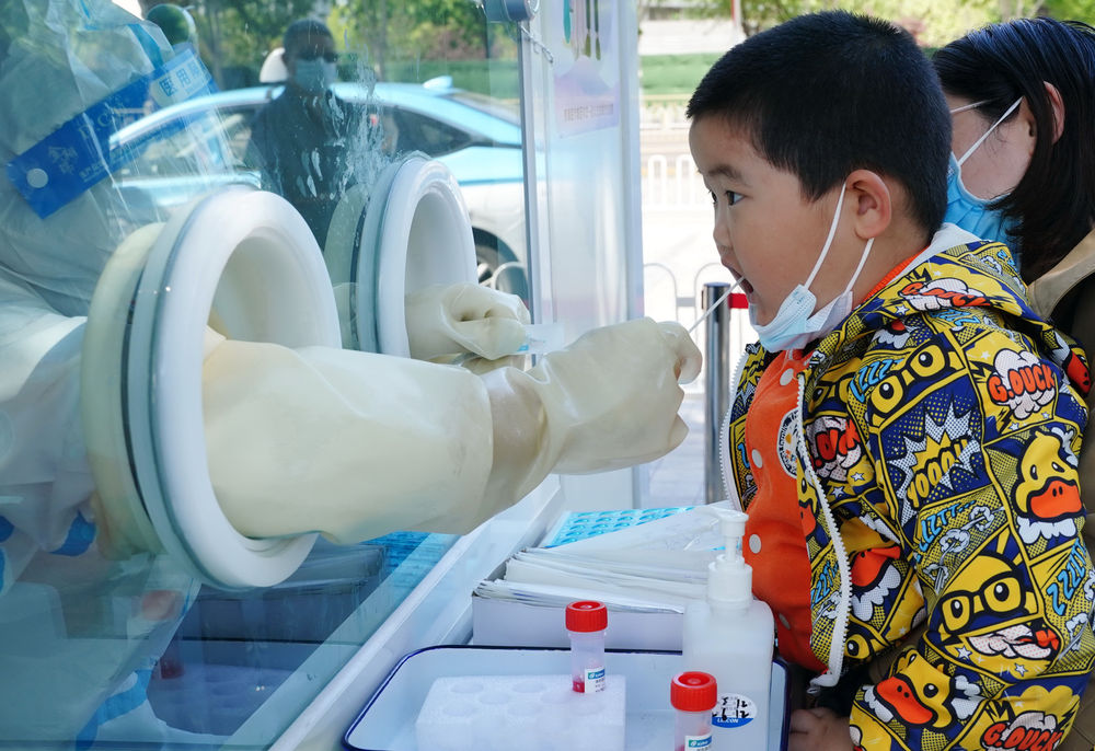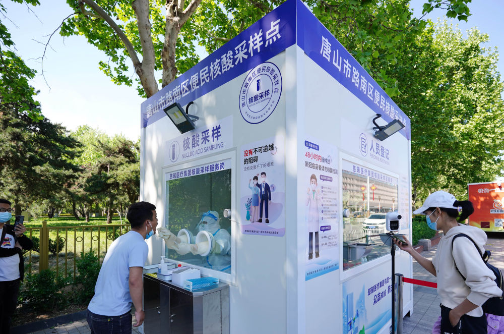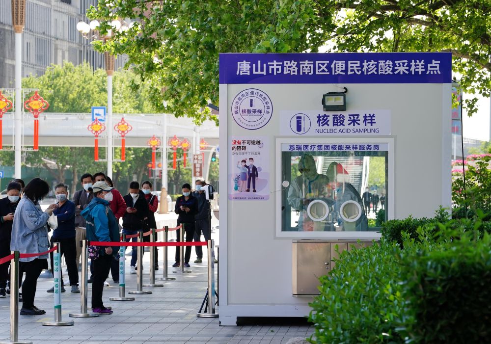 5月14日,市民在唐山市紀(jì)念碑廣場附近核酸采樣點(diǎn)進(jìn)行核酸檢測采樣。來源: 新華社客戶端