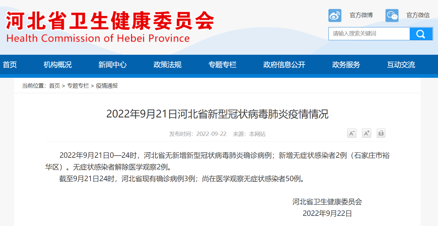 2022年9月21日0—24時,河北省無新增新型冠狀病毒肺炎確診病例;新增無癥狀感染者2例(石家莊市裕華區(qū))。無癥狀感染者解除醫(yī)學觀察2例。 截至9月21日2 ...