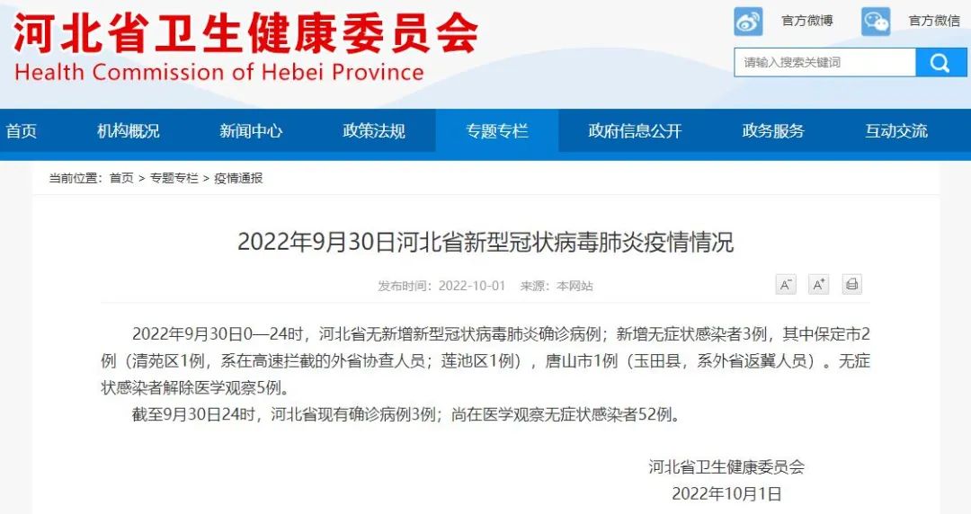 2022年9月30日0—24時(shí),河北省無(wú)新增新型冠狀病毒肺炎確診病例;新增無(wú)癥狀感染者3例,其中保定市2例(清苑區(qū)1例,系在高速攔截的外省協(xié)查人員;蓮池區(qū)1例),唐山市1例(玉田縣,系 ...