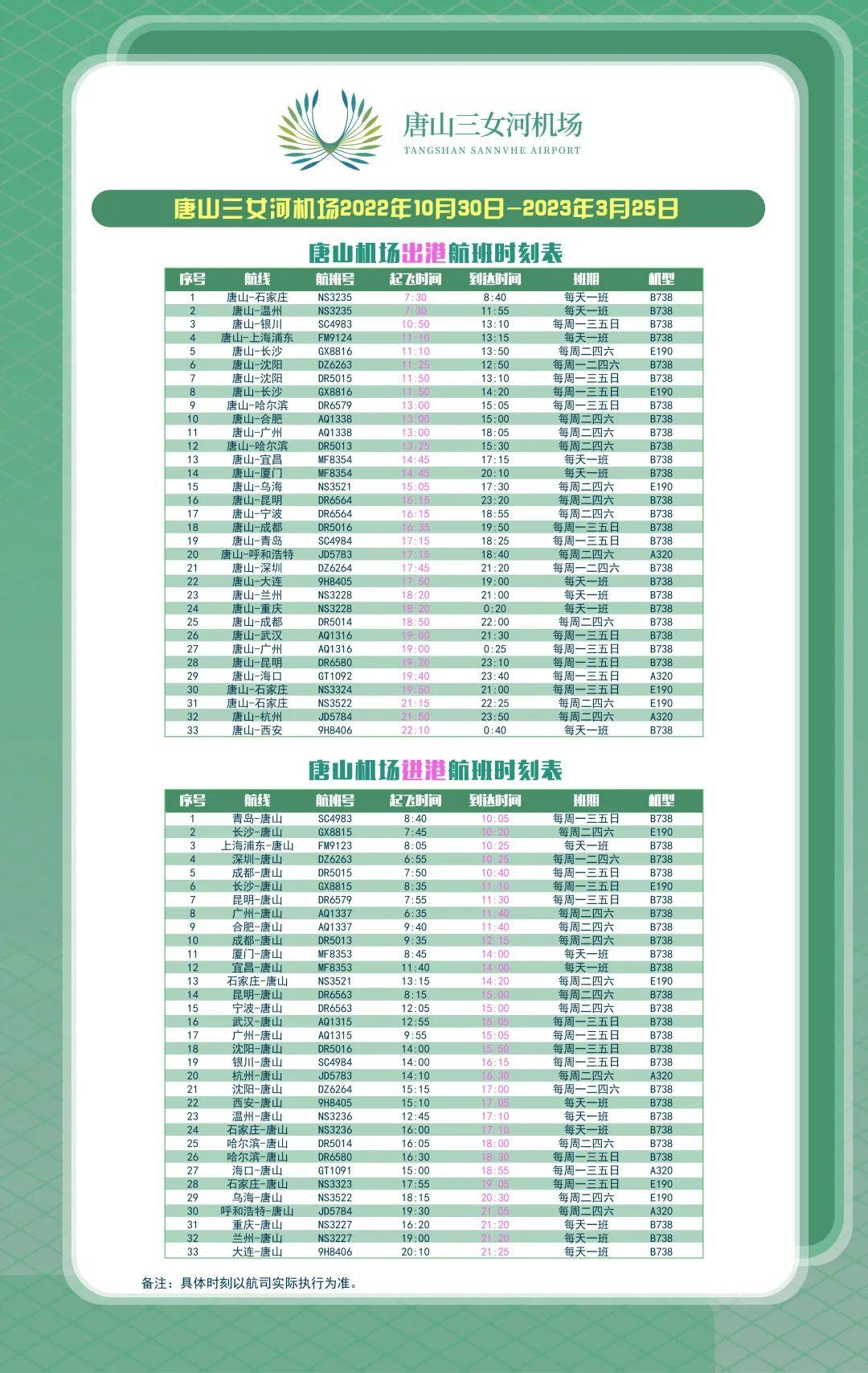 唐山機場航班換季啦航班換季 來源: 唐山三女河機場微信公眾號