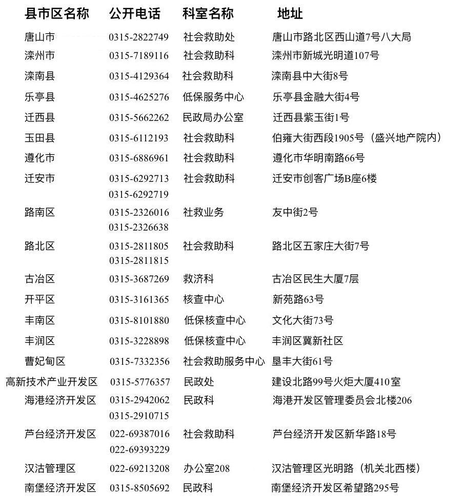 唐山市各縣區(qū)社會(huì)救助政策咨詢電話(2022.10.19更新),詳情如下: 來(lái)源: 中國(guó)唐山